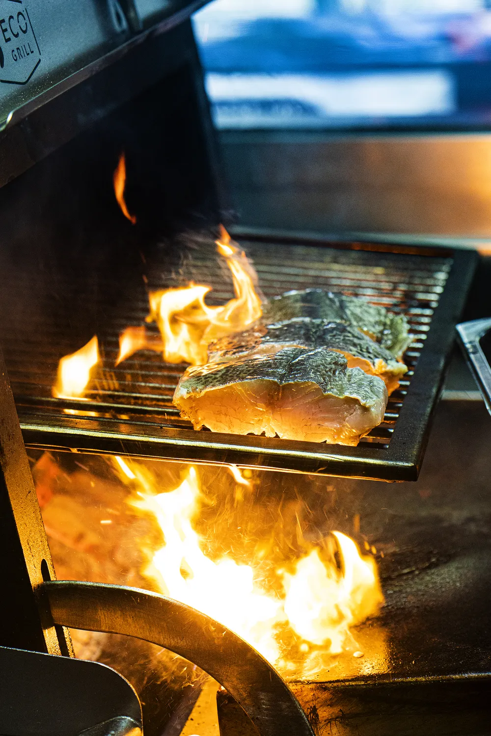 Oferece uma grande variedade de peixe e marisco confecionado das mais variadas formas, quer seja em pratos claramente portugueses, outros japoneses ou até de fusão.